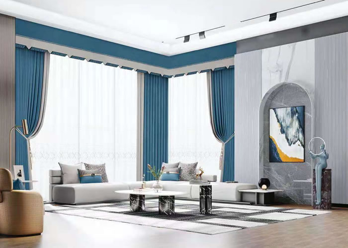 市場上高檔窗簾的面料有很多種,面料質地有純棉、麻、滌綸、真絲,也可幾種原料混織而成。輕、薄透明或半透明的布料,有棉、聚酯棉混紡布、玻璃紗、精細網織品、蕾絲和巴里紗等;中等厚度的不透光布料,有花式組織棉布、尼龍及其混紡布,稀松網眼布;滑面布料,如擦光印花棉布磨光棉布、仿古緞子、真絲和波紋綢等。